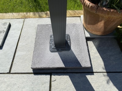 As requested I enclose a couple of pics of our gazebo. The unusual feet are to give height and are inverted planters filled with concrete and cemented to the slabs!