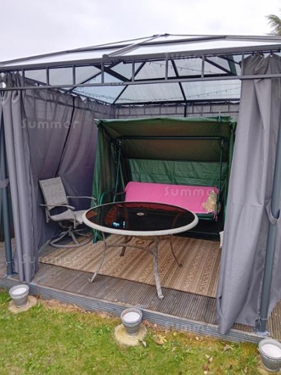 Recently received your garden gazebo and we would like to say how delighted we are with it. Speedy delivery everything needed to erect promptly. Neat design and good price what more could we ask.