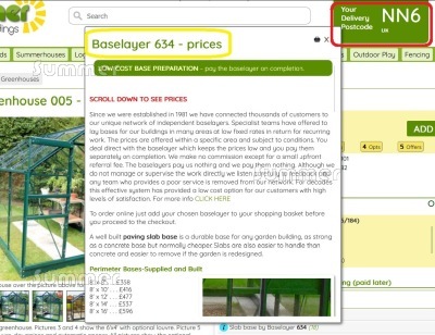 PICTURE: See where to set your delivery postcode (circled in red). See the pop-up window with each fitter or baselayer's prices (circled in yellow).
