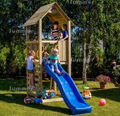 The most basic and compact play centres are a single tower with a slide and no other sizeable attachments. We offer a variety of platform heights and areas. A longer slide is required for a taller platform.